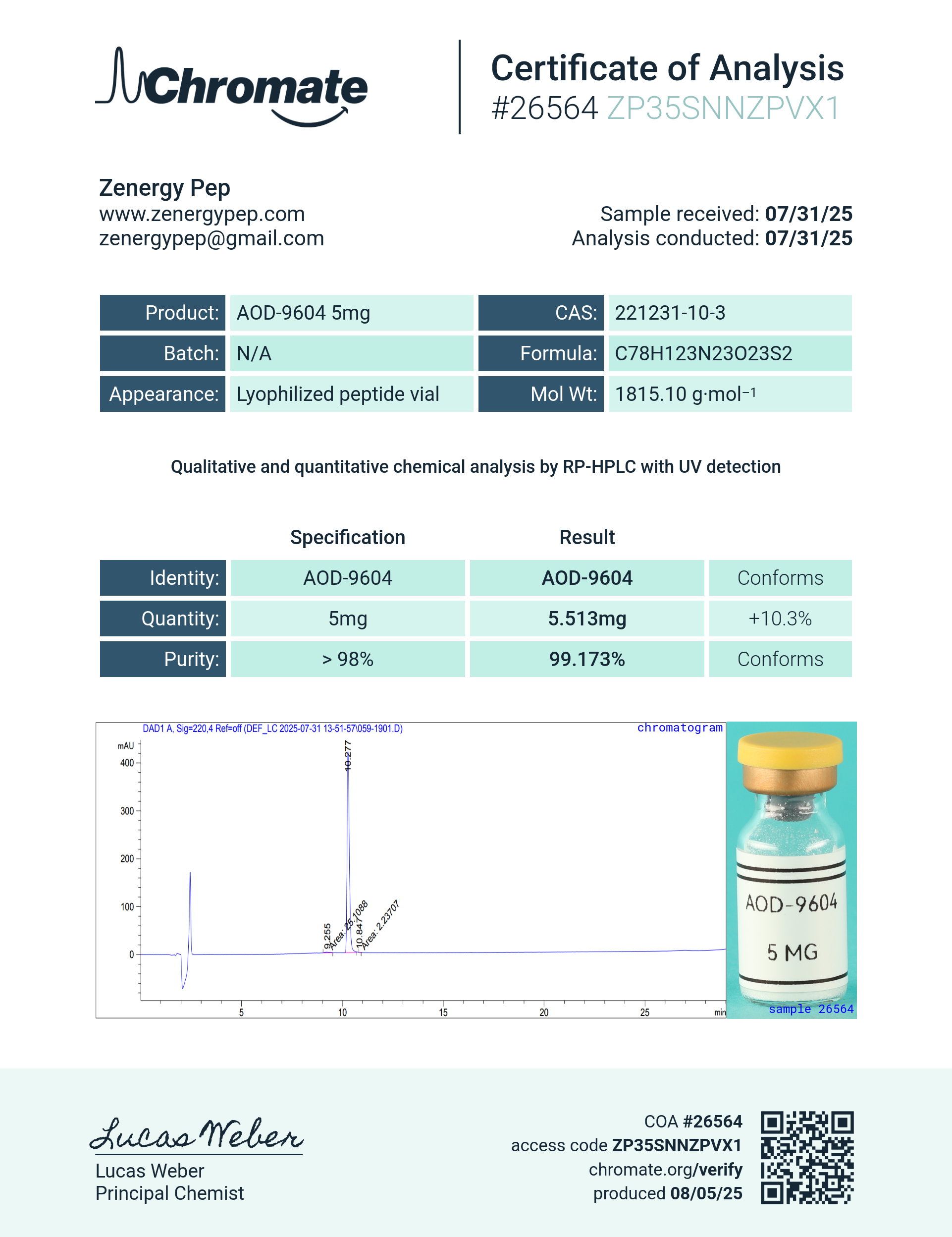 | AOD-9604 5 mg | March 2, 2026 | View COA |
