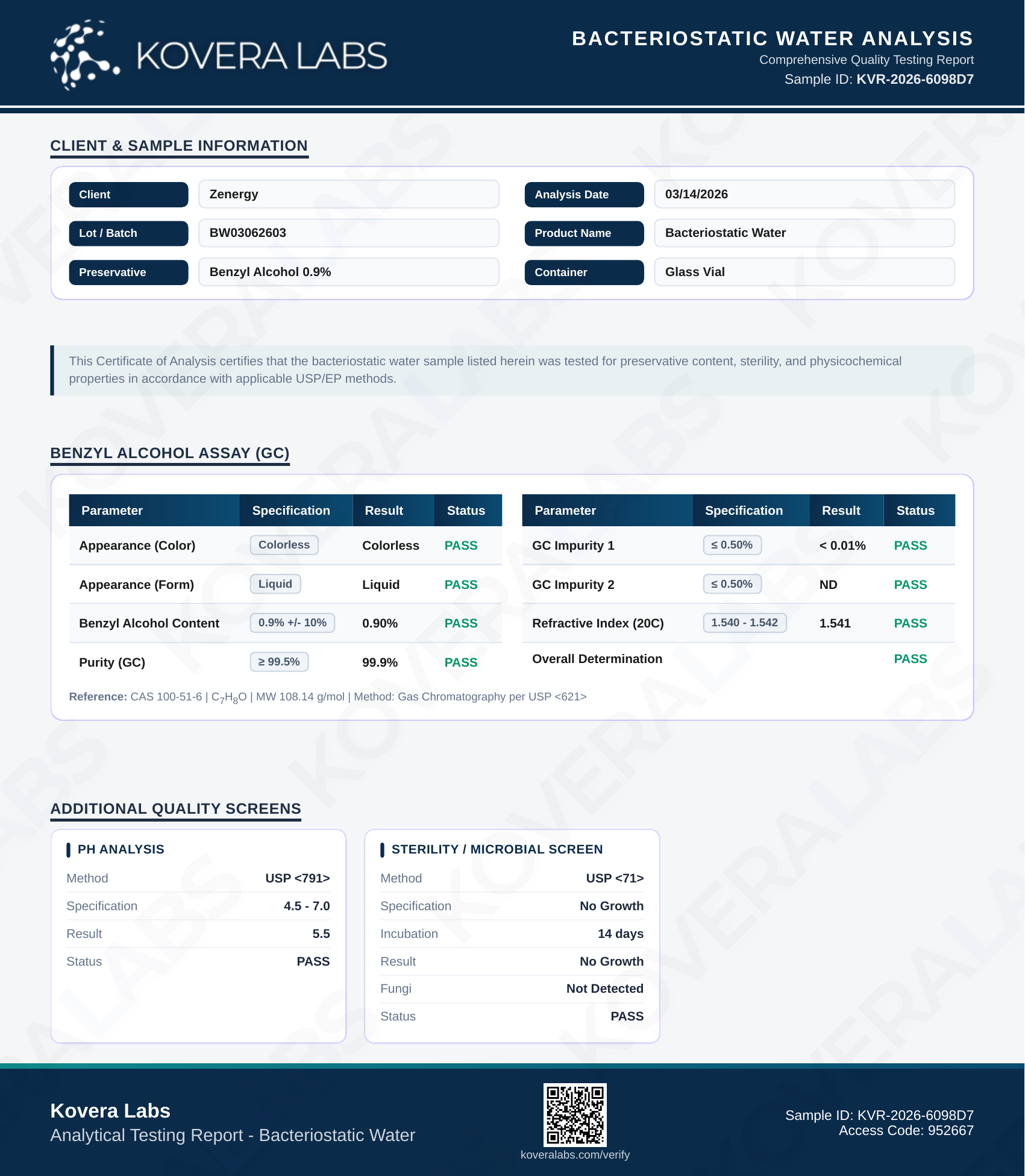 | Benzyl alcohol 0.9% | March 2, 2026 | View COA |
