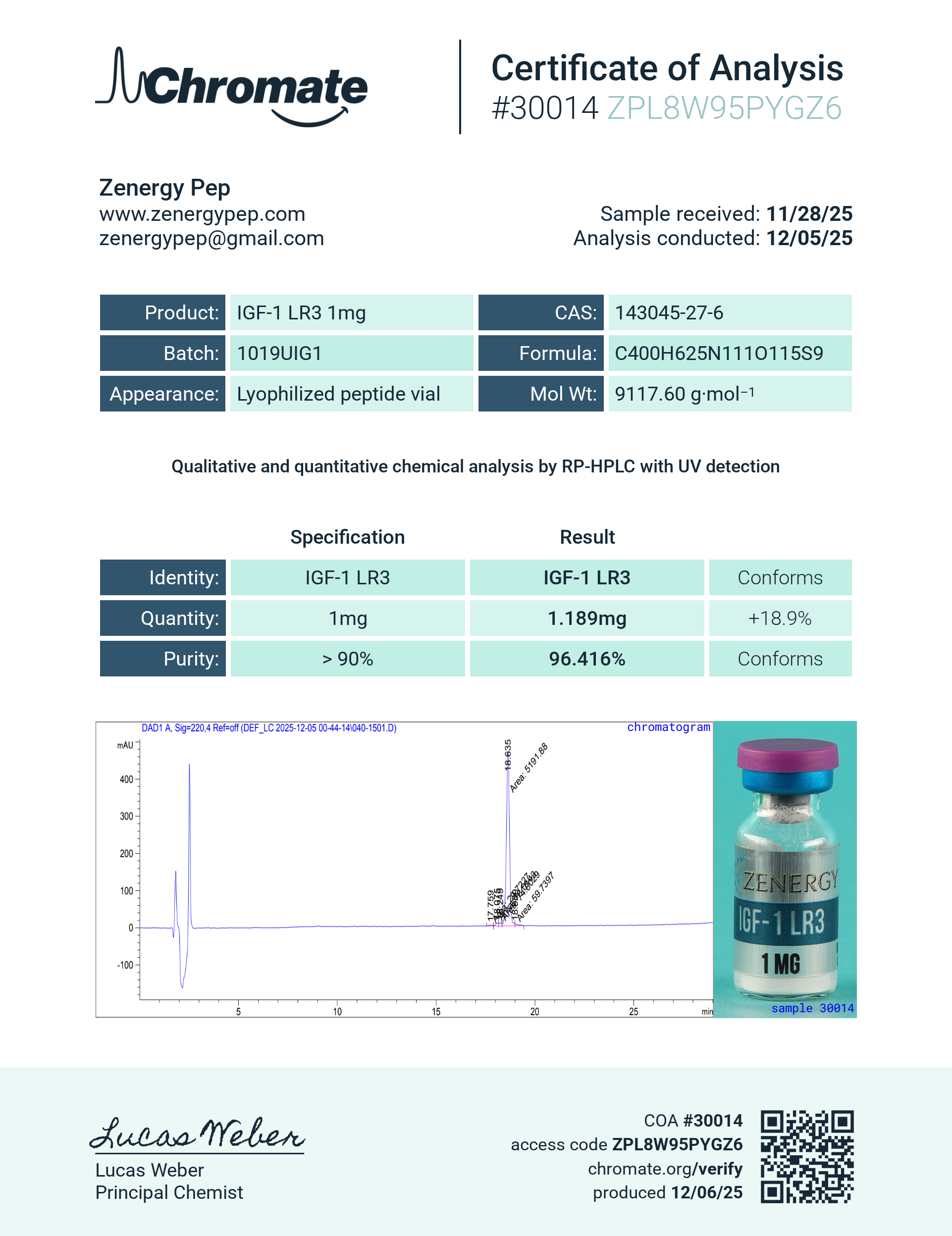 | IGF-1 LR3 1 mg | March 2, 2026 | View COA |