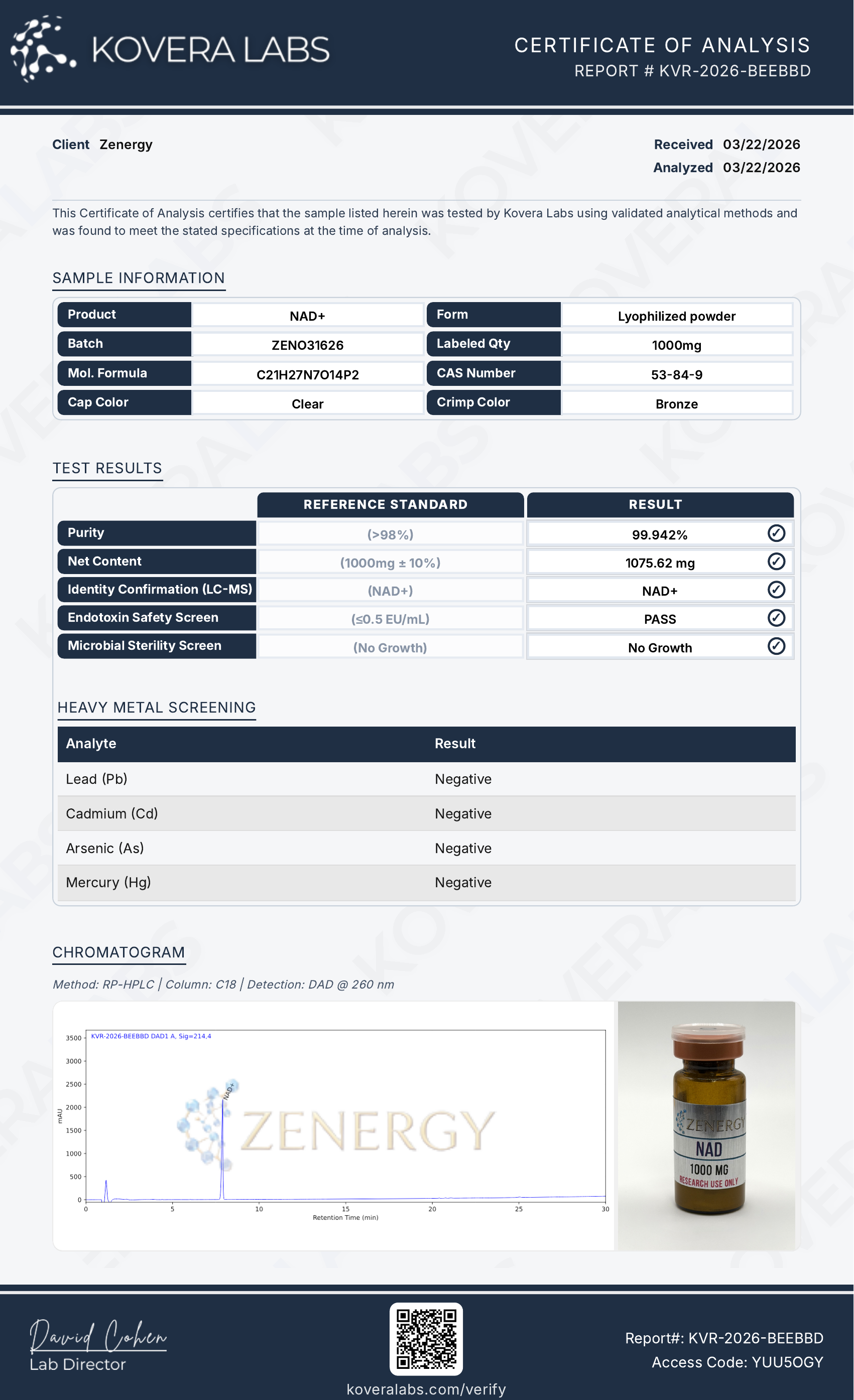 | NAD+ 1000 mg | March 29, 2026 | View COA |